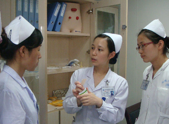 谈起造口护理,金老师不禁打开了话匣。2008年,她被湘雅二医院选派至南京国际造口治疗师学校学习,成为省内最早一批、二院首位国际造口治疗师。2009年,湘雅二医院开设了造口门诊,由金老师每周一、四下午坐诊。被问及钻研造口护理技术的初衷,金老师有着自己的考量:“专科护理是一种趋势,护理不像医生那样高端尖。我们都是在平凡的岗位上做平凡的事情,但有了专科护理之后,(就)更能够提升护理的价值。”