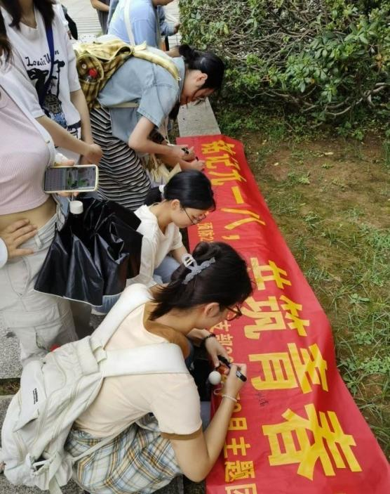随后,学子们在横幅上留下自己的名字,这不仅代表着对革命先烈的缅怀,更是让先烈们见证新时代青年也有着为国献身的魄力与决绝。