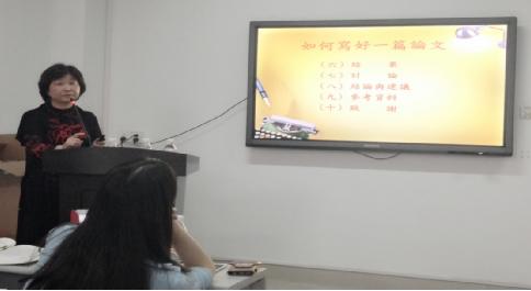 徐南丽教授首先向大家播放了一段介绍台湾元培医事科技大学护理系的视频,让同学们见识到宝岛上护理学院的别样风采。然后从标题、摘要、方法与对象、参考文献、论文书写等多个方面进行阐述,并紧密结合实际,向大家讲授从编辑的角度如何撰写护理学术论文,受到全体人员的一致好评。徐南丽教授的到访加深了海峡两岸护理学之间的学术交流和护理人员的相互了解,双方都希望今后继续开展相关多种形式的学术交流。