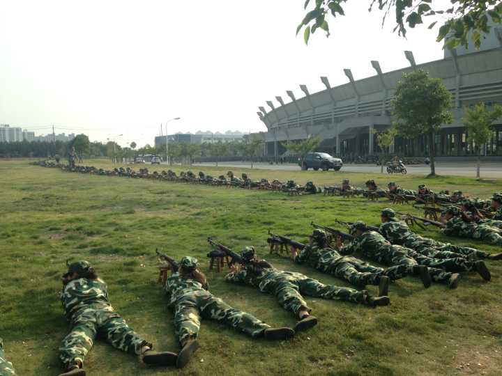 军训生活并不是那么简单,偌大的篮球场终日充斥着教官们“一二一,一二一”“不行,再来”“恢复”的喊声,小鲜肉们在老腊肉声嘶力竭的呐喊声下过着疲惫而又充实的每一天。军姿,敬礼,脱帽戴帽,立正,稍息,跨立,走齐步踢正步……那些看似简单的小动作往往有无数细节需要我们注意,每个人必须保持百分之两百的注意力才能使自己动作勉强达到教官满意的程度。高强度的重复练习,受伤是在所难免的,每天训练下来每个人身上都会带着不同程度的伤,从腰到脚,无一例外。迎着朝阳开始接受一日的训练,伴着落日带着满身的疲惫回寝室。这日复一日的练习,虽然累,却让懒散懈怠的我们逐渐变得严谨刚毅。那一道道挺直竖立在训练场上,头顶骄阳脸滚汗珠却巍然不动的身影就是最好的证明。