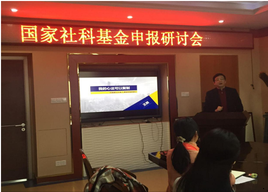 讲座围绕选题设计、研究对象界定、科学问题凝练、结构逻辑安排和内容写作心法等五方面展开。王昶教授首先向大家讲解了从2014年度起国家社科基金重大课题申报中选题类别的一些变化,建议在进行课题申报时注意选题的政治性、政策性、针对性和实效性。其间辅以生动的实例逐层展开,并就目前申报选题中容易犯的错误进行了分析。接下来王昶教授重点介绍了“问题金字塔”型的结构逻辑安排方式,突出逻辑关系,突出内容层次。最后王教授分享了他在课题申报、结题写作中的经验。整个讲座气氛轻松、愉快,而又引人深思。讲座结束后,王昶教授与我院教师就国家社科基金课题申报、结题等展开了深入的交流,对我院正在进行中的国家社科基金课题研究给出了中肯的建议。党委书记罗军飞作总结,对王昶教授开诚布公、毫无保留地将自己多年的社科基金申请的“心法”传授于我院师生给予了高度地赞扬,并表示感谢;也寄期望于我院教师能够再接再厉,今年国家社科基金申报能再创辉煌。