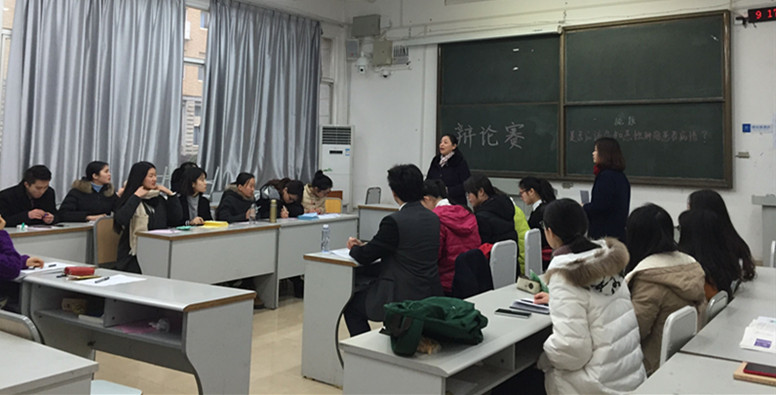 此次辩论赛以班为单位,每班的辩论队由5位同学组成,现场抽签决定正方和反方。其余同学是观众、啦啦队员、支持者和评判者,裁判员由临床护理学系的老师组成。赛前,参加辩论的双方都积极地收集资料,多次进行辩论赛培训及演练,为比赛做了充分的准备。