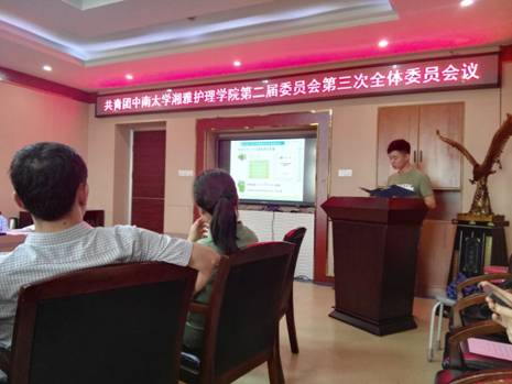 会议初始,袁世平副书记带领大家学习了习近平总书记给清华大学校庆的贺信和他访问中国科技大学时的讲话;黎梦老师作团委工作汇报时强调宣传建设和社会实践是团委工作的重心;黄耳、湛士林以汇报病历的方式进行学生会工作汇报,内容丰富,形式新颖,收获好评;周建宇为大家介绍了健康教育基地的筹建以及近期的活动安排;护理1404团支部以“世界这么大,这里就是家”为主题的风采展示让所有人感受到了这个五四红旗团支部的爱与温暖;刘菡婷总结了宣传新闻中心一年来的改革发展情况,表示在学院党委、团委的支持下将继续做好宣传工作。