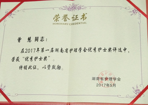 我院曾慧教授获评湖南省护理学会第一届优秀护士