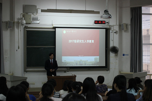 17级研究生新生王尊代表所有新生进行了发言,他引用了湘雅精神来勉励自己和大家,公勇勤慎,诚爱谦廉,求真求确,必邃必专。希望17级新生们都能传承湘雅精神,将湘雅精神发扬光大。