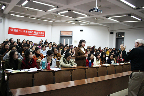 James教授教龄长达50年,擅长统计分析、科研设计等,致力于研究艾滋病、慢性病管理等公共卫生领域问题以及涉及经济的社会卫生研究。James教授授课幽默风趣,平易近人,在讲座中深入浅出,运用13条准则为我们介绍数据分析的科学与艺术,让我们以新的视角来看待数据分析。在场的老师和学生们全都认真倾听James教授的分享,对James教授的科研严谨、求真务实的科研精神感到由衷钦佩,也对James教授的研究问题表示出了极大的兴趣。在分享结束后,同学们踊跃提问,积极表达自己在科研过程中遭遇的困惑,James教授也悉心为大家一一解答。最后,James教授通过分享他人生中的一个小故事结束了本次讲座。