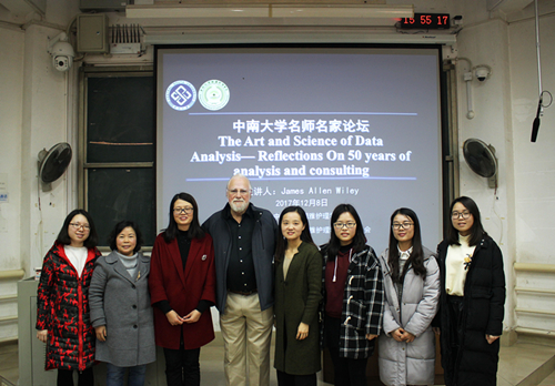 2017年12月8日,我院“开元集团官网入口名师名家论坛”系列学术讲座在湘雅医学院新校区福庆楼T208教室顺利召开。本次讲座特别邀请美国加州大学旧金山分校卫生政策研究所客座教授James Allen Wiley,主题为“The Art and Science of Data Analysis-Reflections on 50 years of analyzing and consulting”。讲座由开元集团网站郭佳副教授主持,本次学术讲座吸引了众多师生,许多留学生也慕名而来,会场内座无虚席。