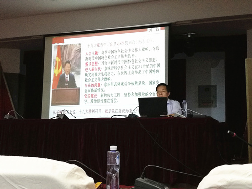 2018年5月26日下午,在湘雅三医院门诊5楼会议室,湖南省教育工委党校常务副校长刘国华教授为我院全体党员和学生干部上了一堂“以十九大精神武装头脑,打好意识形态领域的阵地战”为主题的党课。党课专题报告由学院党委副书记袁世平同志主持。