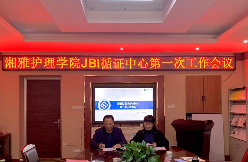 签约仪式之后,JBI湘雅中心召开第一次工作会议。会议主要就JBI合作机构目前的形式及下一年度的工作目标及初步工作计划进行规划,为促进中心的良性发展,会议制定了相关章程和制度。穆佩芬教授对新成立的JBI湘雅中心的定位、组织架构以及工作计划表示肯定,并鼓励中心以证据转化为重心,协同附属医院做好持续质量改进。唐四元表示,JBI循证卫生合作中心作为全球五大循证科研中心之一,覆盖全球50多个国家和地区,湘雅护理学科将通过这个国际化的合作平台,争取更多更高质量的科研产出,扩大湘雅护理学科在全球范围内的影响力。