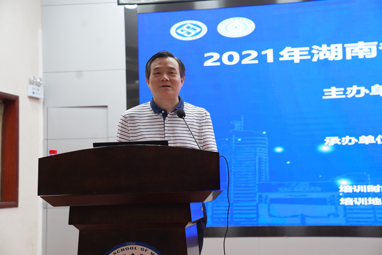 湖南省卫健委老龄健康处处长许长林在开班式致辞。他强调推进医养结合深度发展对于应对人口老龄化挑战、满足老年群众健康需求及建设健康中国等方面的重要意义。他希望通过此次培训,能够培养湖南省医养结合事业发展的中坚力量,从而推动全省医养结合工作开创新局面,形成全社会支持发展老年健康的良好环境;最后,他对参会学员提出了具体要求和希望。