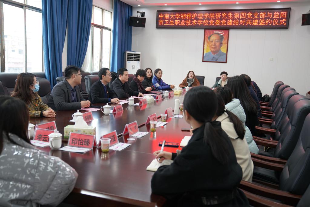 学院旨在通过此次共建结对活动切实发挥博士党支部的先进性和专业优势,给基层党组织建设带来生机与活力,以党建结对为契机,积极探索帮扶基层单位的工作机制和经验,筑牢支部堡垒,擦亮湘雅护理旗帜。更是学院促进党的建设与专业建设深度融合,实现以高水平党建引领高质量人才培养的有益实践。