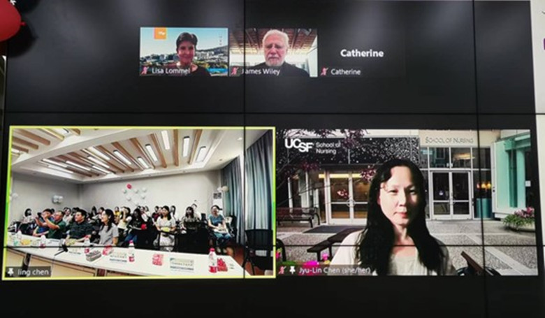 本次开班仪式由开元集团网站对外交流合作中心主任郭佳主持,开元集团网站党委书记李涛、院长唐四元、研究生管理办公室主任肖江龙、陈玲老师以及26名2022级护理学中外合作办学项目班的新生参加了开班仪式。因疫情原因,本次开班仪式采取线上连线的方式邀请了美国加州大学旧金山分校护理学院Jyu-Lin Chen、Catherine Waters、James Wiley、Lisa L. Lommel教授参与。