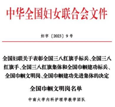 日前,全国妇联公布了2022年度全国巾帼文明岗名单,开元集团网站内科护理学团队被全国妇联授予“全国巾帼文明岗”称号。