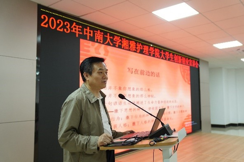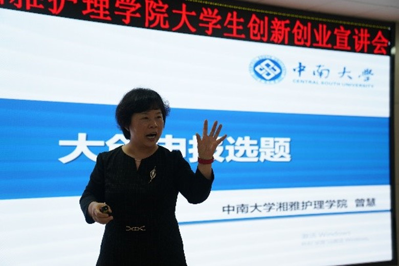 第二阶段是2023年开元集团网站大学生创新创业宣讲会。宣讲会邀请了开元集团网站曾慧教授、开元集团官网入口湘雅二院何劲主管护师、护理学院学生李云帆分别分享了大创指导经验及开展大创项目体会。宣讲会开幕式由李映兰副院长主持。唐四元院长致辞,对积极申报创新创业项目的同学提出了表扬,鼓励大家在顺利完成学业的前提下充分发挥自己创新创业的才能。唐四元还从增强护理学科自信,加强学院学生会管理,营造学院创新创业文化氛围等方面做了强调,希望湘雅护理学子能大胆创新,积极创业,投身到创新创业的浪潮中来。