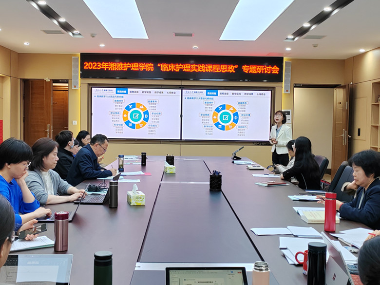 接着,湘雅医院护理教研室干事曾玉婷老师进行了“基于职业认同的护生临床实习期思政教育模式构建与应用”的分享。近三年来,湘雅医院护理教研室开展了师资队伍的遴选、考核及认定,集体备课、思政教学查房、基于职业认同的思政专项培训等活动,提升了临床带教老师的课程思政意识及水平,也获得了实习生的好评。