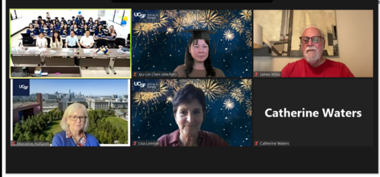 随后,美国加州大学旧金山分校Jyu-Lin Chen发表讲话,她表示三年的线上学习经历特殊且难忘,她对同学们取得的成绩表示祝贺,并希望同学们未来可以利用自己所学为全球的健康事业做贡献。