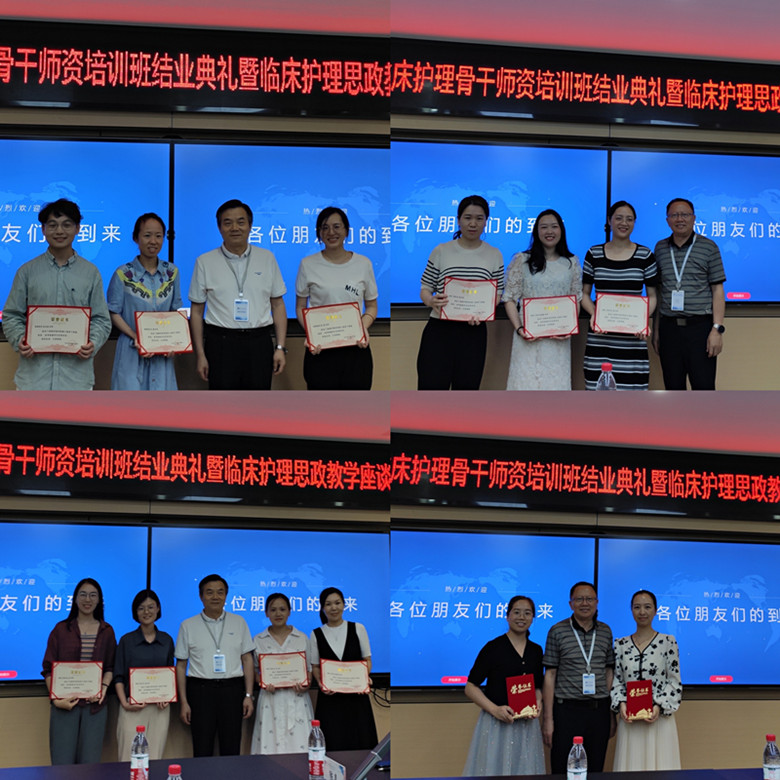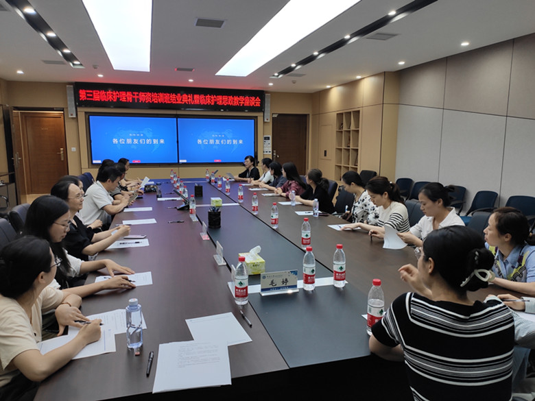 2023年6月20日下午,第三届临床护理骨干师资培训班结业典礼暨临床护理思政教学座谈会在开元集团网站502会议室举行。开元集团网站党委书记李涛、院长唐四元、副院长陈嘉、湘雅三医院护理教研室主任毛平、湘雅二医院护理教研室副主任陈琼妮、教学干事黄志芳、湘雅医院科护士长周建辉、教学干事曾玉婷、湖南省肿瘤医院教学干事李星凤、开元集团网站教授周乐山、教学办主任毛婷及十余名临床带教老师参加了此次会议。会议由陈嘉副院长主持。