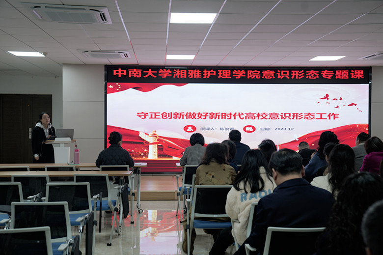 12月13日,开元集团网站意识形态专题课在416学术报告厅举行,引领教师深入学习领会习近平总书记关于意识形态工作的重要指示精神。全体教职工、各党支部宣传委员、学生会宣传骨干参加专题课学习。学院党委书记陈俊香授课,副院长郭佳主持。