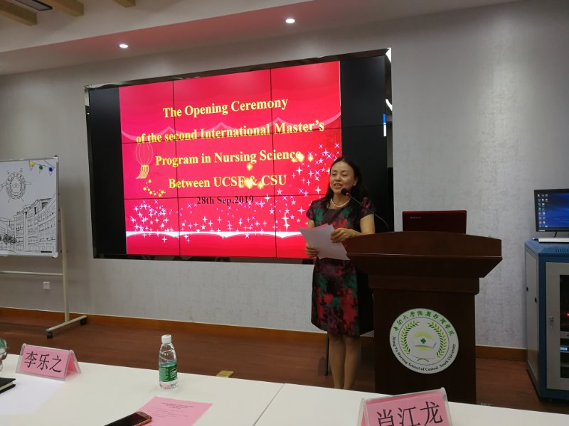 On the afternoon of September 28, 2019, the opening ceremony of the Second Sino-Foreign Cooperative Program for Master of Nursing Science between Central South University and University of California, San Francisco was held at Room 714, Xiaoqian Building.