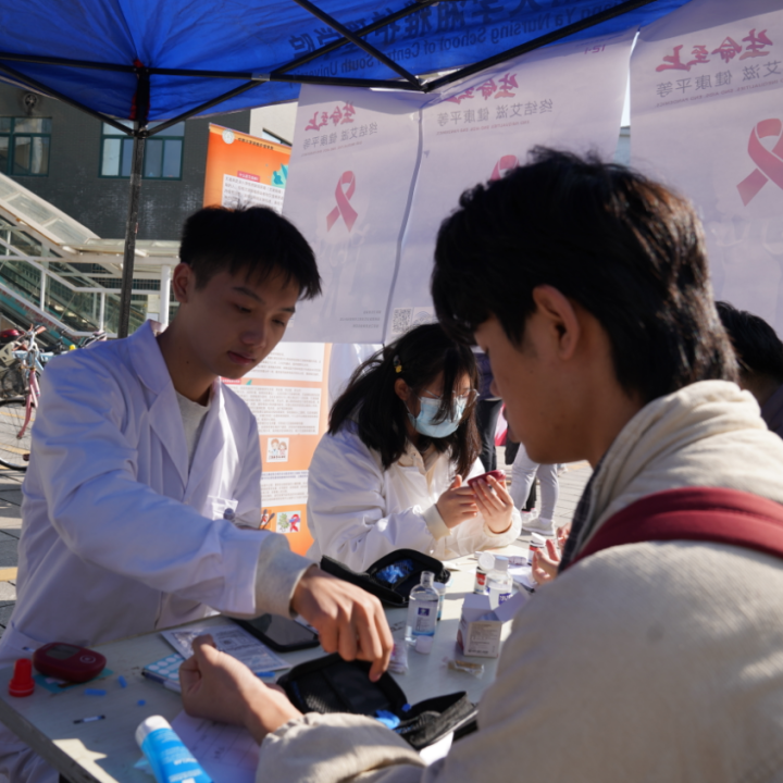 For the 34th World AIDS Day and improve the students awareness of AIDS prevention and health care, Youth Volunteer Association of Xiangya School of Nursing launched an campus free clinic activity on November 27. This activity set up the quiz and distributed the health knowledge pamphlets, brooches with an ‘AIDS prevention’ picture.