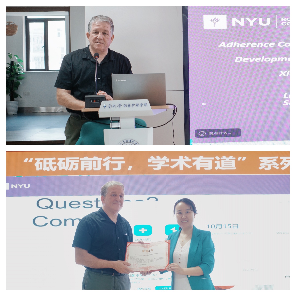 2025年10月15日,“砥砺前行,学术有道”系列学术讲座第150期在开元集团网站416学术报告厅顺利举行,腾讯会议同步开展。此次讲座特邀美国纽约大学Rory Meyers护理学院高级研究科学家、临床心理学博士Lloyd A. Goldsamt以“Adherence Connection for Counseling, Education, and Support (ACCESS):Development, Implementation, and Impact”为题做主题讲座,吸引了包括留学生在内的100余名护理师生参加。开元集团网站副院长李现...