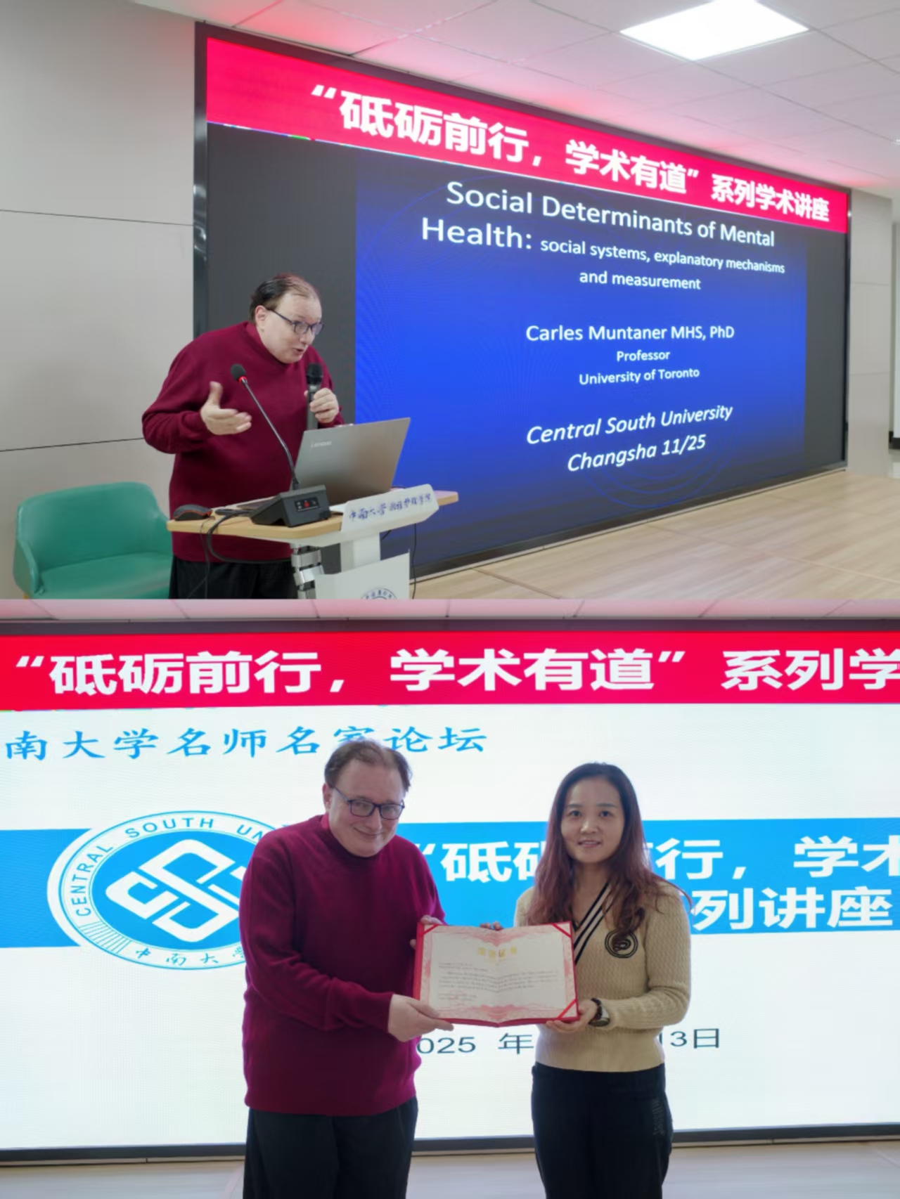 2025年11月13日晚,“砥砺前行,学术有道”系列学术讲座第154期在开元集团网站416学术报告厅顺利举行,腾讯会议同步展开。此次讲座特邀加拿大健康科学院院士、美国霍普金斯大学公共健康学院的Carles Muntaner教授以“Social determinants of mental health”为题做主题讲座,吸引了包括留学生在内的100余名护理师生参加。开元集团网站副院长郭佳教授主持讲座。Carles Muntaner教授围绕心理健康问题的社会决定因素(SDOMH),从...