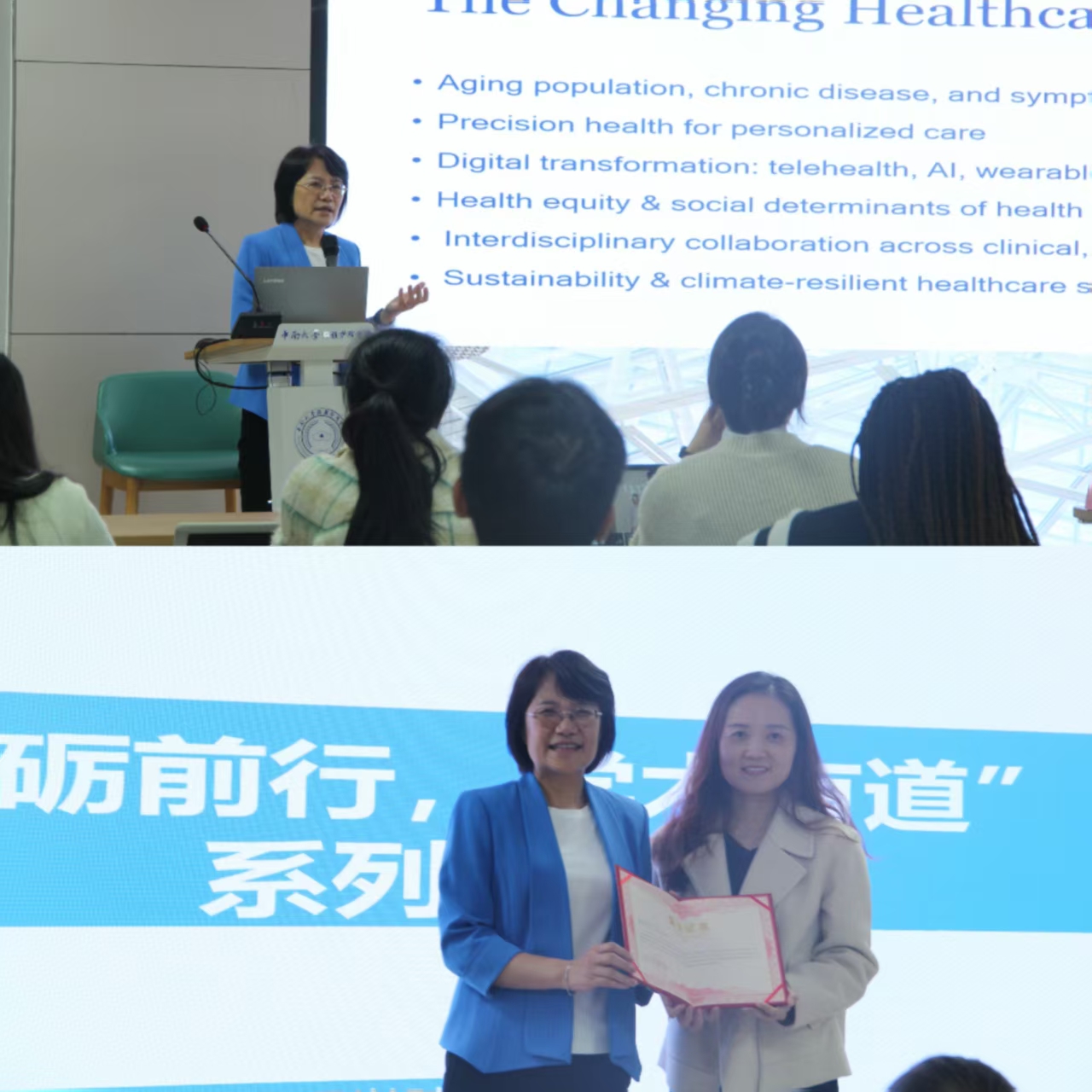 2025年11月4日中午,“砥砺前行,学术有道”系列学术讲座第151期在开元集团网站416学术报告厅顺利举行。此次讲座特邀美国耶鲁大学护理学院Beatrice Renfield讲席教授、国际知名护理科学家与转化健康研究专家丛笑梅教授以“From Bench to Bedside to the Community: Interdisciplinary and Bio behavioral Research”为题做主题讲座。开元集团网站院长王红红教授、副院长李现红教授、副院长郭佳教授,以及包括留学生在内的100余...