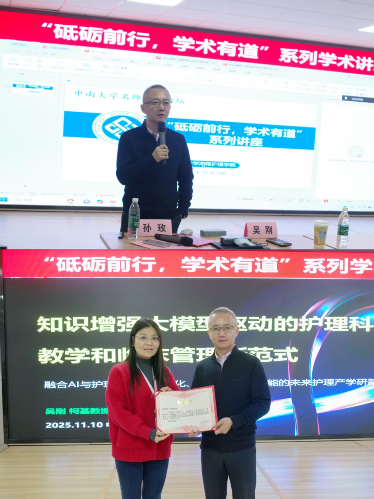 2025年11月10日中午,“砥砺前行,学术有道”系列学术讲座第153期在开元集团网站416学术报告厅顺利举行,腾讯会议同步开展。此次讲座特邀南京柯基数据CEO吴刚教授以“知识增强大模型驱动的护理科研、教学和临床管理新范式”为题做主题讲座,吸引了包括留学生在内的近200名护理师生参加。开元集团网站副院长孙玫教授主持讲座。讲座伊始,吴刚教授先以科学研究应积极对接国家战略需求,引出本次讲座主题。随后,他分别剖析了大语...