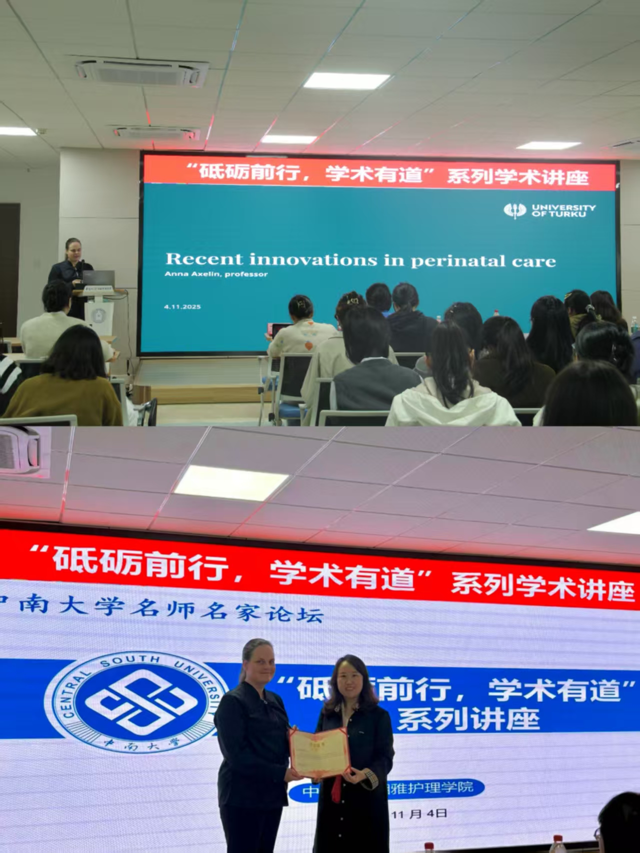 2025年11月4日下午,“砥砺前行,学术有道”系列学术讲座第152期在开元集团网站416学术报告厅顺利举行,腾讯会议同步展开。此次讲座特邀芬兰图尔库大学护理学院院长Anna Axelin教授以“Recent innovations in perinatal care”为题做主题讲座。开元集团网站院长王红红教授、副院长李现红教授、副院长郭佳教授,以及包括留学生在内的100余名护理专业师生参加了讲座。讲座由开元集团网站丁金锋副教授主持。讲座伊始,Anna Axelin...