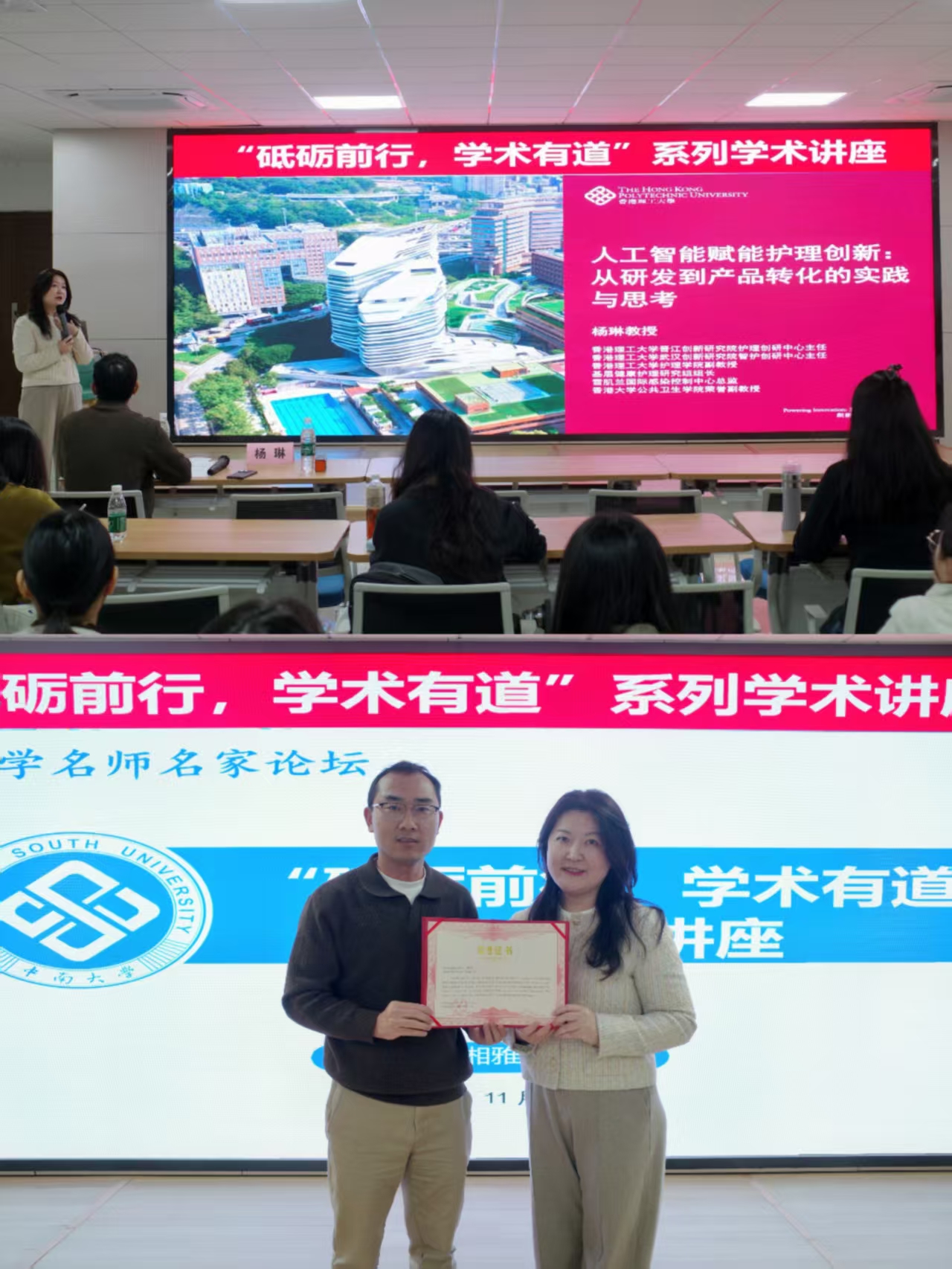 2025年11月13日下,“砥砺前行,学术有道”系列学术讲座第155期在开元集团网站416学术报告厅顺利举行,腾讯会议同步展开。此次讲座特邀香港理工大学护理学院副教授、基层健康护理研究组负责人杨琳教授以“人工智能赋能护理创新:从研发到产品转化的实践与思考”为题做主题讲座,吸引了包括留学生在内的50余名护理专业学生参加。开元集团网站丁金锋副教授主持讲座。讲座伊始,杨琳教授以人工智能(AI)的发展历程为切入点,介绍...
