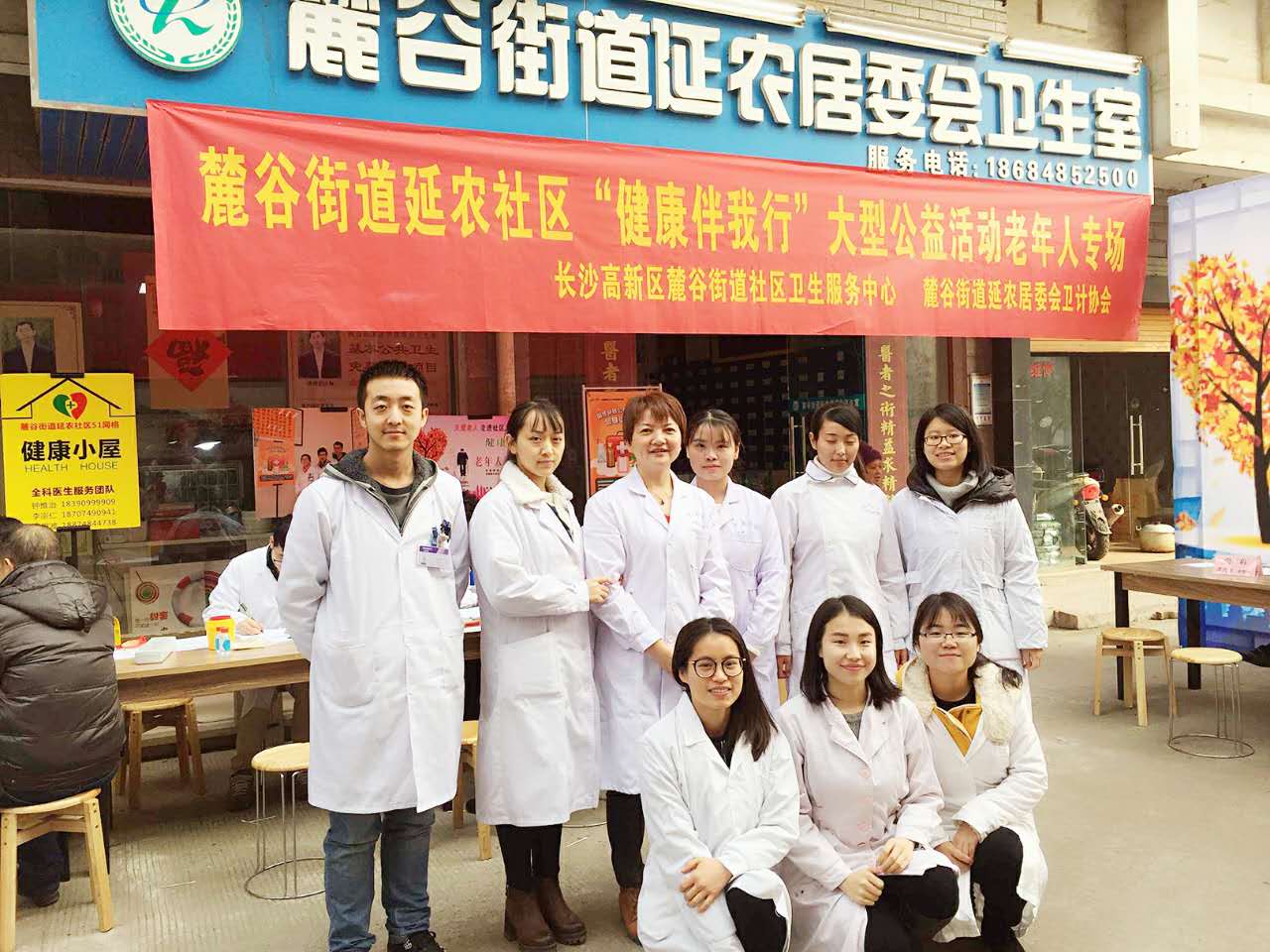 2017年1月4日,开元集团网站王秀华教授带领社区护理系学生一行9人参与了由长沙高新区麓谷街道社区卫生服务中心、麓谷街道延农居委会卫计协会主办的“健康伴我行”大型公益活动老年人专场。