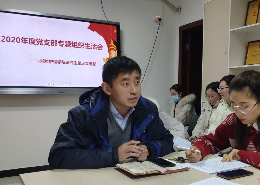 2021年1月14日晚上7点,研究生第一党支部于湘雅医学院新校区学生活动室召开2020年度组织生活会暨民主评议党员大会,学院联系本支部的党委委员、副院长李乐之出席本次会议。会议由支部书记苏义冬主持。
