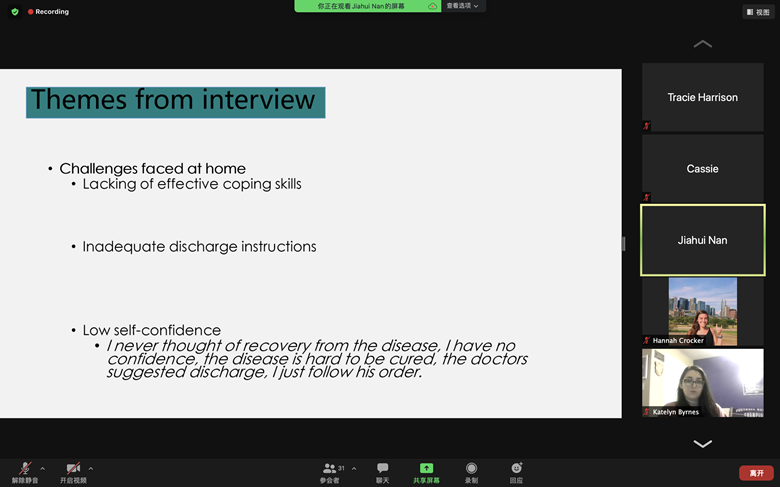 2021年2月26日8:00,开元集团网站与美国德克萨斯大学奥斯汀分校联合开展的健康老龄化及残疾预防国际课程论坛顺利举行。论坛围绕全球促进健康老龄化策略,老年共病及残疾预防等主题进行,本次论坛由开元集团网站杨敏教授主讲,两校师生使用ZOOM进行线上互动交流。 杨敏教授以“Mental & Emotional Needs or Impairments”为主题,讲授了包括精神病病人出院准备的概念、评估工具、影响因素、干预措施和建议等五方面的...