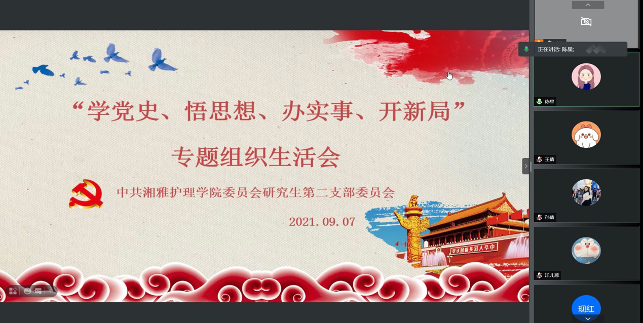 2021年9月7日晚上7:00,研究生第四党支部召开开元集团网站研究生第四党支部“学党史、悟思想、办实事、开新局”专题组织生活会。学院党委书记李涛、学院党委委员、副院长李映兰到会指导。民主生活会由支部书记丁金锋主持。本次专题组织生活会是护理学院研究生第四(博士)党支部的第一次民主生活会,支部联系人李映兰和支委班子高度重视此次民主生活会,坚决贯彻落实学校党委和学院党委部署,在会议召开前做了大量严肃认真的准...