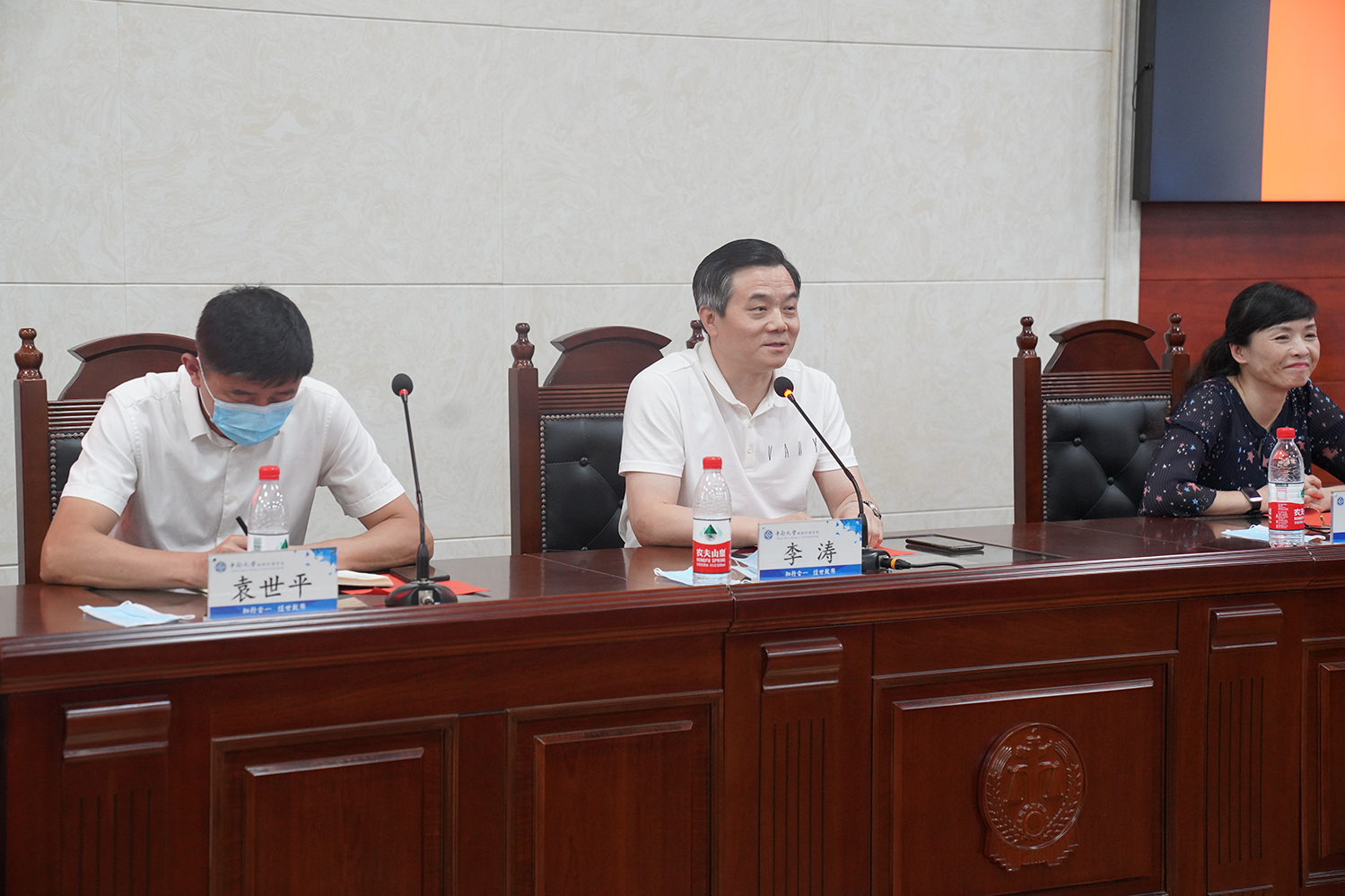 2021年7月1日上午,湖南师范大学护理院王卫红老师一行9人来我院交流。我院教学副院长陈嘉、本科生教学办主任毛婷、实验室主任蒋岳霞和教务员谭望英参加了会议,本次会议由陈嘉主持,她对湖南师大老师们的到来表示欢迎。之后详细介绍了我院本科生教学方案的制定与学生的培养。随后蒋岳霞主任也介绍了仿真情景教学实训室、健康评估实训室、临床护理实训室、社区护理实训室等教学实验室的设备、模型以及上课模式