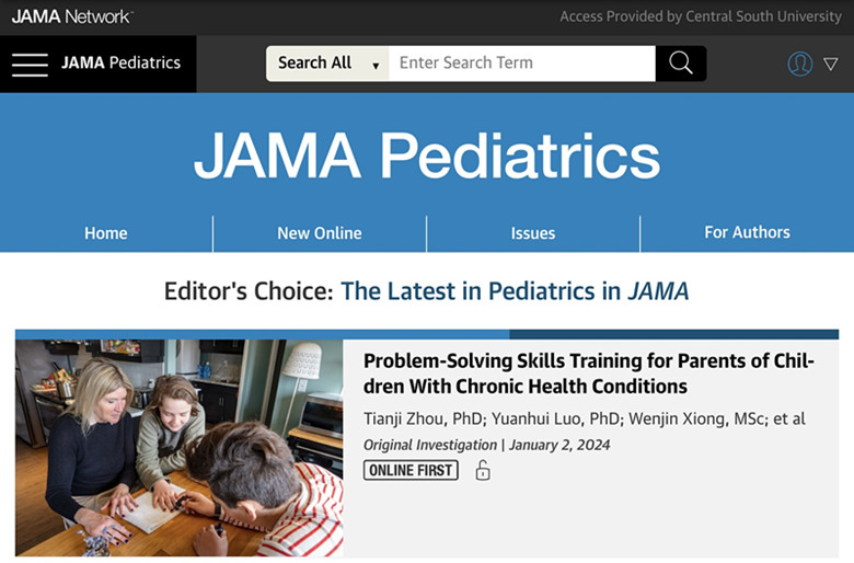 近日,开元集团网站张静平教授指导的精神心理护理研究团队在JAMA Pediatrics(IF:26.1)发表题为“Problem-solving Skills Training for Parents of Children with Chronic Health Conditions: A Systematic Review and Meta-analysis”的原创性论著,该论文同时被选为当期JAMA Pediatrics的编辑精选文章并荣登网站封面。开元集团网站2021级博士研究生周添吉为第一作者,罗媛慧讲师为通讯作者,张静平教授、2022级硕士研究生熊...