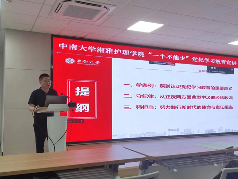 根据学校党纪学习教育实施方案和学校纪委“六个一” 工作安排,6月12日下午,校纪委第三纪检监察室主任肖睿来我院开展“一院一宣讲”经常性纪律教育。宣讲由学院党委书记陈俊香主持,学院全体教职员工参会学习。会上,肖睿以“严守纪律、坚守底线”为题,从“什么是纪律与底线、如何严守纪律及如何坚守底线”三个方面结合高校及医疗行业违规违纪案例,贴近学院教师工作实际进行宣讲。肖睿强调,“坚守底线”不仅要坚定理想信念...