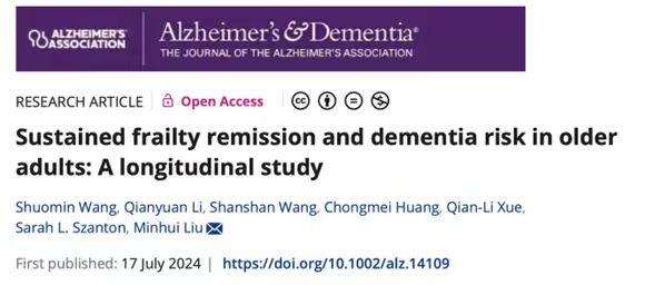 近日,开元集团网站2022级硕士研究生王烁敏以第一作者在神经病学领域top期刊Alzheimer’s & Dementia(IF: 13.0)发表题为“Sustained frailty remission and dementia risk in older adults: A longitudinal study”的原创性论著,导师刘民辉教授为通讯作者。该研究基于美国国家健康和老龄化趋势研究(National Health and Aging Trends Study,NHATS)数据库,通过Cox回归分析模型探讨了连续三年的衰弱转归模式(frailty tran...