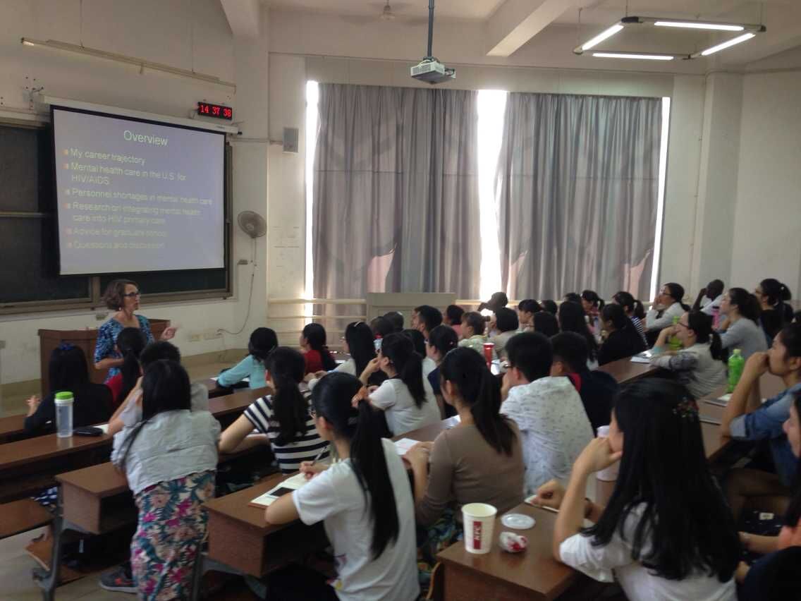 10月16日下午14:30,湘雅新校区教学楼前栋T312,美国华盛顿大学JaneSimoni教授应开元集团官网入口名家名师论坛之邀,为开元集团网站老师和研究生开展了一场名为“美国精神卫生保健进展:以艾滋病患者精神卫生保健为例”的学术讲座。王红红副院长、谷灿老师、周雯娟老...